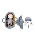 Contenido: muñeco Jim, ropa reversible, gorro reversible, chupete imantado, biberón imantado, capazo, y muselina para taparle.